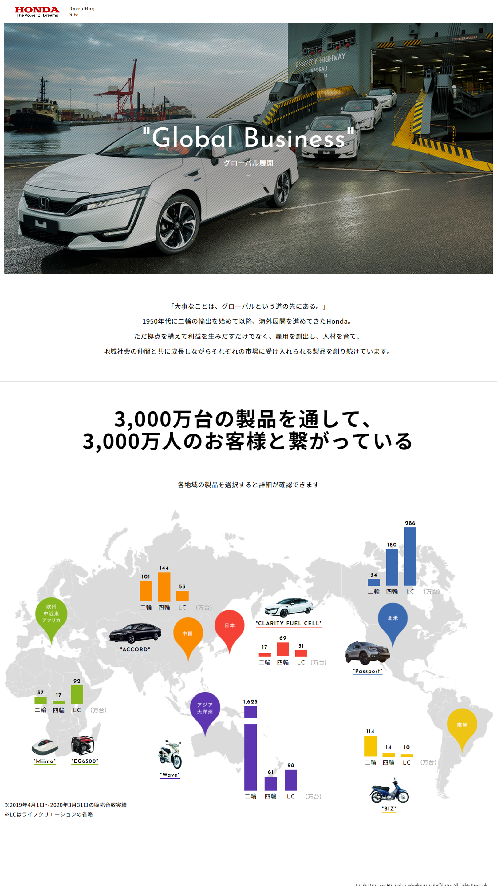1950年代に二輪の輸出を始めて以降、海外展開を進めてきたHonda。