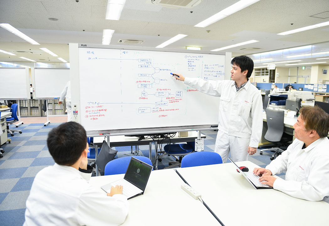 社内SEにとってのユーザーは、工場のスタッフです。現場の作業内容でわからないことがあればすぐに聞けるというメリットはあるものの、その反面、自分の仕事の成果がダイレクトに跳ね返ってくるという緊張感もあります。ただ、ユーザーが求めていることを実現できたときには大きな達成感を味わうことができます。直接、工場のスタッフから感謝の言葉をいただけたときには確かな手応えを感じることができます。
