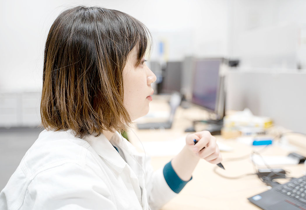 在籍している課は様々な部品を取り扱っているので、人数規模も大きいです。各部品によって細かくチームが分かれており、そのなかのひとつに所属し、チームのメンバーとともに同じモデルに搭載するドライブユニットを開発しています。私と同世代のメンバーや少し上の先輩など、比較的若いメンバーで構成されています。ハイブリッド系の技術はまだエンジンなどと比べると歴史が浅いため、挑戦の機会が豊富です。