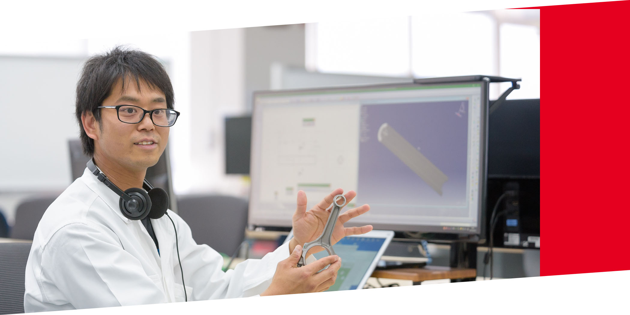 入社以来、二輪車のガソリンエンジンの設計に奮闘しています。バイクのエンジンなんて技術的には成熟していると思われるかもしれませんが、実はまだまだ進化の余地が大いにある。内燃機関の熱効率を向上させれば、電気を使った動力よりも環境負荷が低いエンジンを実現することも物理的に可能。そんな次元を目指して、Hondaの次なるエンジンの開発に取り組んでいます。