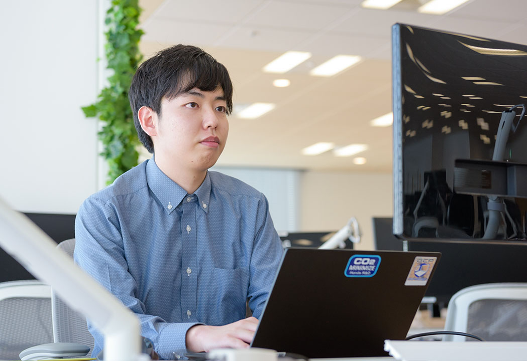 開発課の使命は、新たなモビリティサービス、コネクテッドサービスを生み出すこと。現在、私はAIエージェントのUX担当として、ユーザー体験に関わるソフトウェアの研究開発に励んでいます。まさに“ALL Honda”とも呼べる多彩な専門家たちと一緒に、日々、「ユーザーがなにを求めているのか」を分析しながら仕様や技術を検討。新しい時代の人とモビリティの関係性、ライフスタイルの無限の可能性を追求しています。